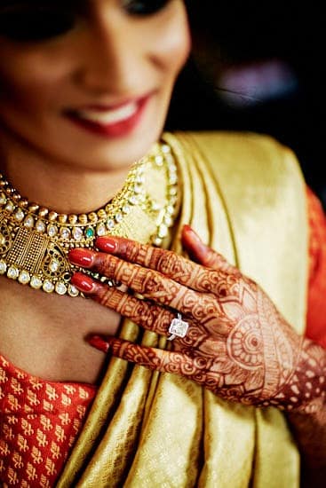 Before the wedding ceremony, the bride’s hands and feet are filled with beautiful henna designs.